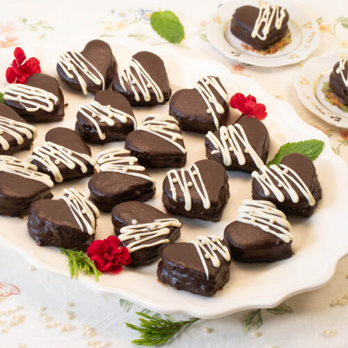 - Cubrir todos los corazones con la mezcla de chocolate, ponerlos sobre una rejilla y dejar secar el chocolate