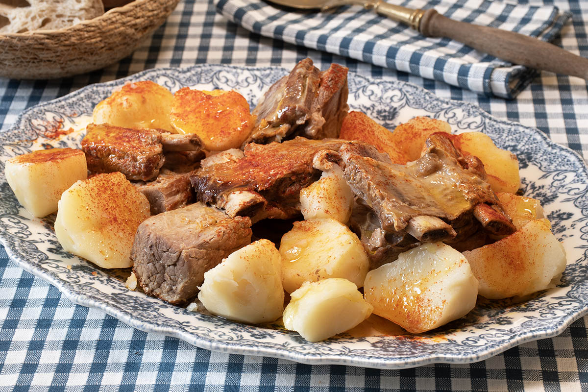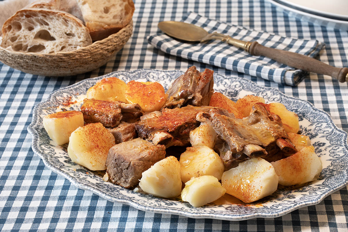 Es de las recetas más sencillas que conozco donde el principal protagonista es el producto. Unas buenas patatas de la tierra, una carne sabrosa de ternera gallega, un poco de unto, pimentón de calidad y tendremos un platazo de antología.