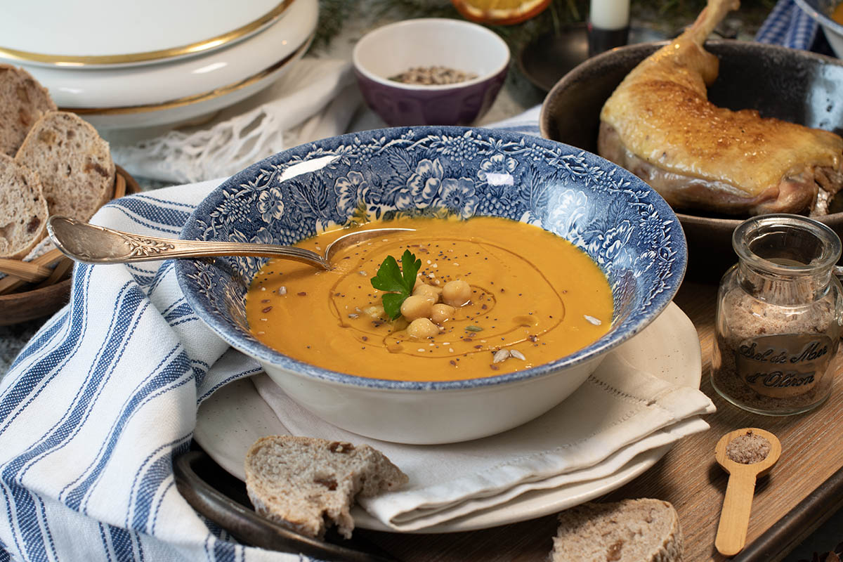 Una buena crema de verduras siempre apetece, sobre todo cuando combina sabores naturales y nutritivos como los de la calabaza, el boniato, el puerro y la zanahoria. En esta receta, además, incorporamos garbanzos cocidos y un muslo de gallina casera —o pollo, si lo prefieres— que aportan cuerpo, cremosidad y un extra de proteínas, convirtiéndola en un plato completo y reconfortante.