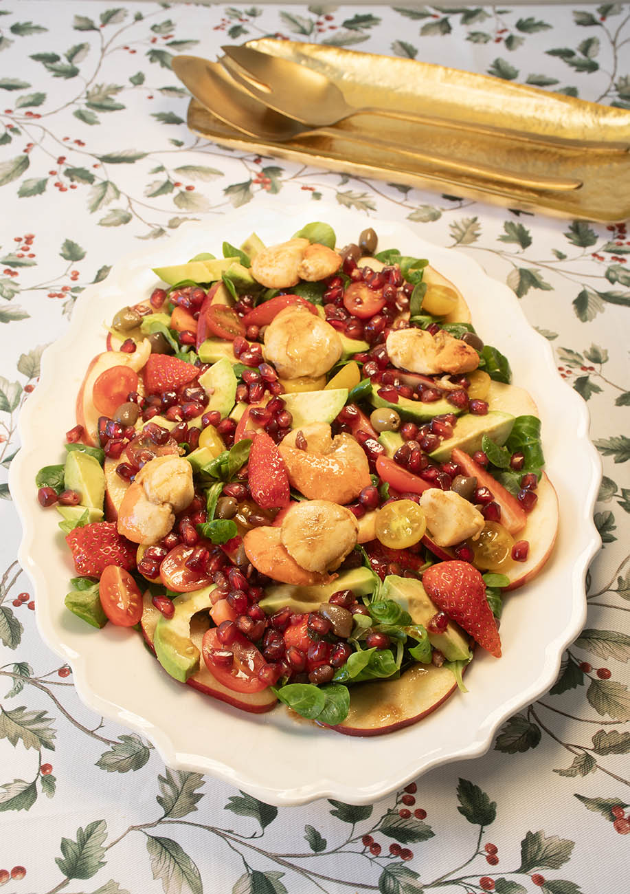 Ensalada de Vieiras, Granada y Manzana: Un entrante festivo y colorido