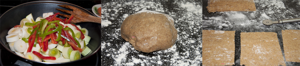 - – Hacemos los rectángulos que utilizaremos para la lasaña y los espolvoreamos con harina para que no se peguen.