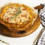 Pastel de puerro, tomate y jamón