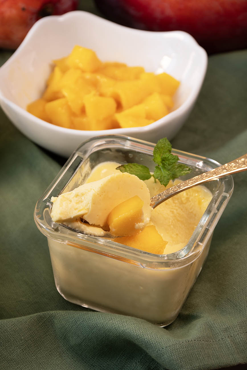 Suave, cremosa y con un delicado contraste entre la cremosidad de la nata y el frescor tropical del mango, es la opción perfecta para poner el broche de oro a cualquier comida.