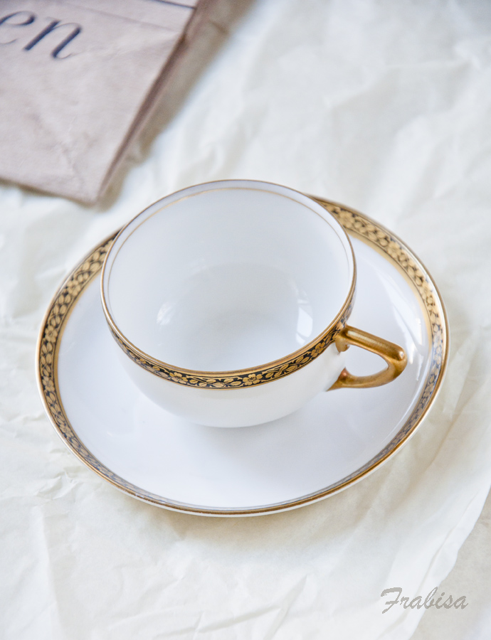 La tacita es de una tienda de antiguedades de carretera, es alemana, era una pieza suelta y es, impresionantemente bonita, súper pequeñita, de una porcelana muy,muy fina, me quedé enamorada de ella nada más verla, me costó cinco euros.