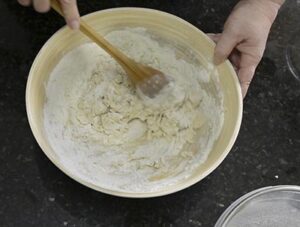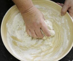 - mete la mano sin miedo y amasa hasta obtener una bola ligada.