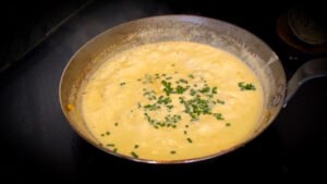 • Cocinamos entre 4 o 5 minutos al tiempo que con una cuchara vamos presionando el queso gorgonzola para que poco a poco se vaya integrando en la salsa. Finalmente apagamos el fuego y espolvoreamos cebollino fresco picadito.