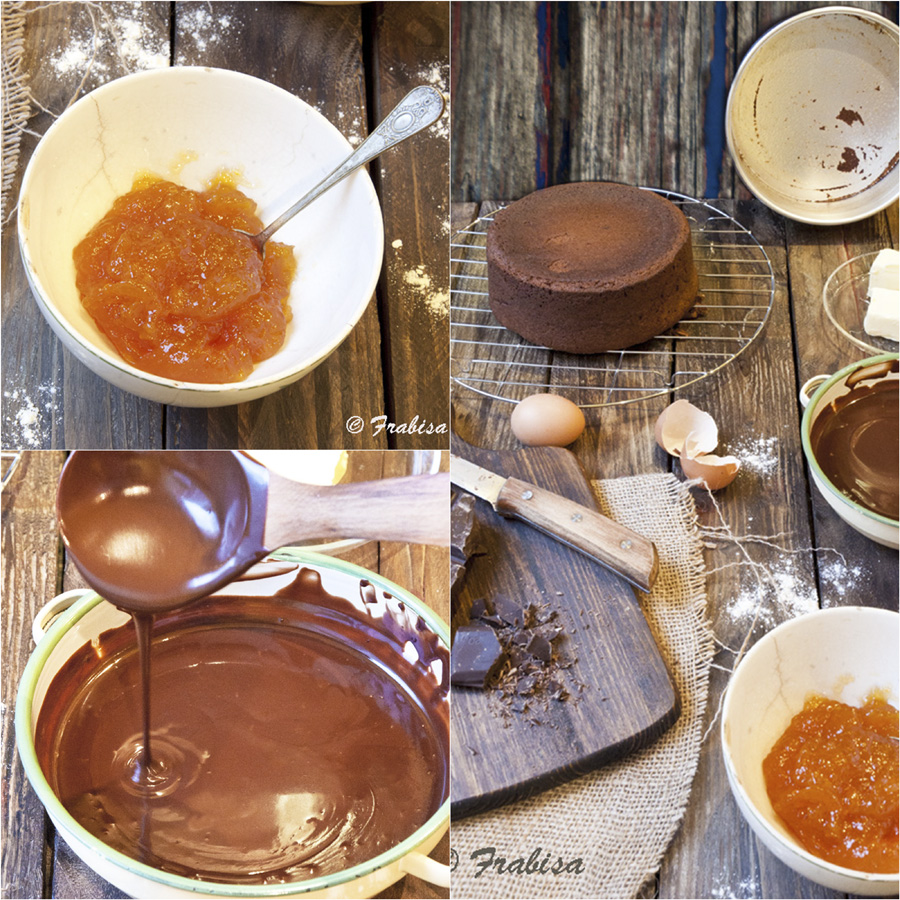 Mira, por una parte está el chocolate que lleva el bizcocho, y por otro el ganache con el que se cubre la tarta, piensa que la tarta va rellena de mermelada no de chocolate.