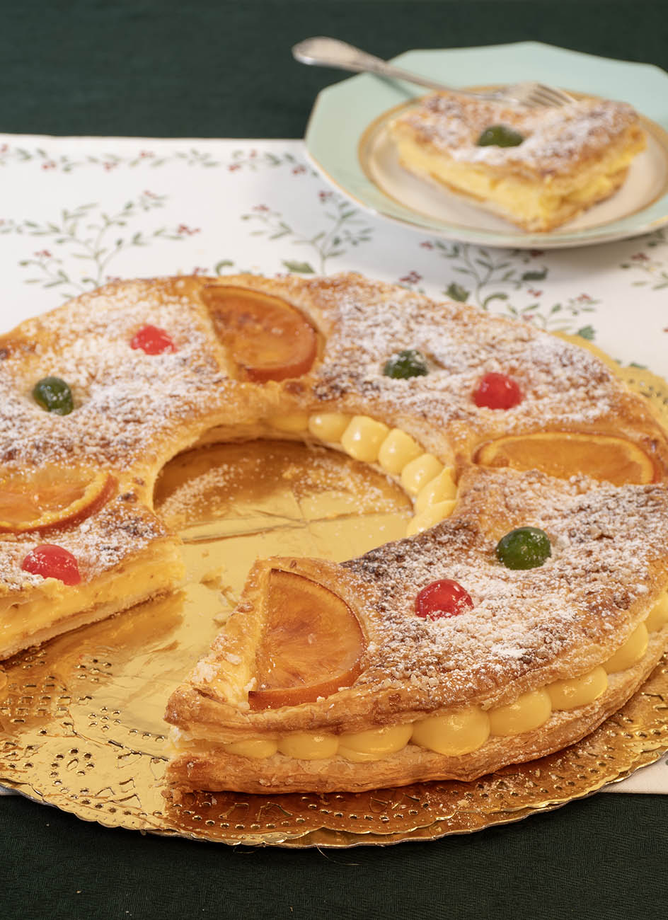 Esta versión se prepara de forma sencilla y rápida, ideal para lucirse en la mesa de Reyes sin complicaciones. El hojaldre aporta una textura irresistible y la crema pastelera, hecha en casa, llena cada bocado de sabor y tradición. Un dulce elegante, vistoso y absolutamente tentador, pensado para disfrutar en familia y celebrar como se merece uno de los días más especiales del año.