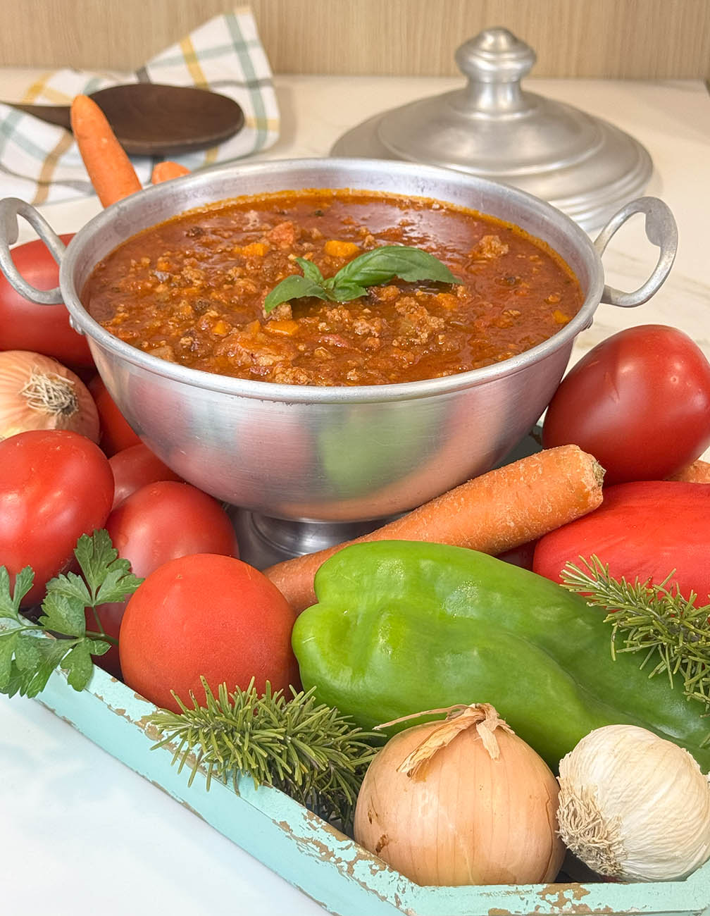 Hay recetas que se cocinan con prisa… y luego está esta. Una salsa boloñesa casera con carne y chorizo que exige tiempo, cuchillo en mano, y una buena dosis de cariño. Aquí no hay atajos: se trocea, se sofríe, se remueve, se espera. Y en cada paso, el aroma va contando el disfrute que nos espera.